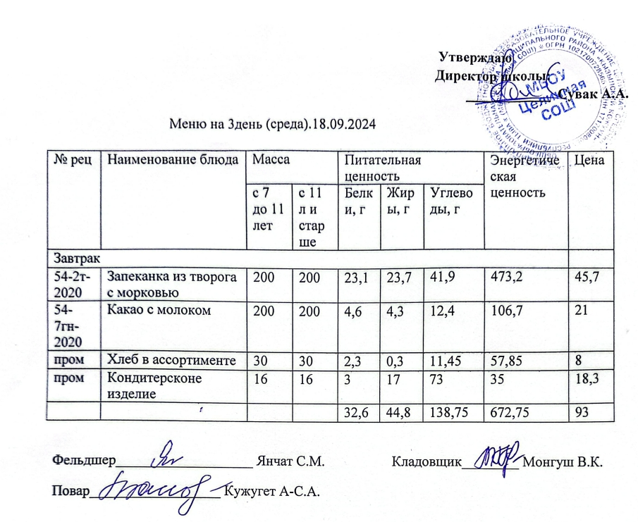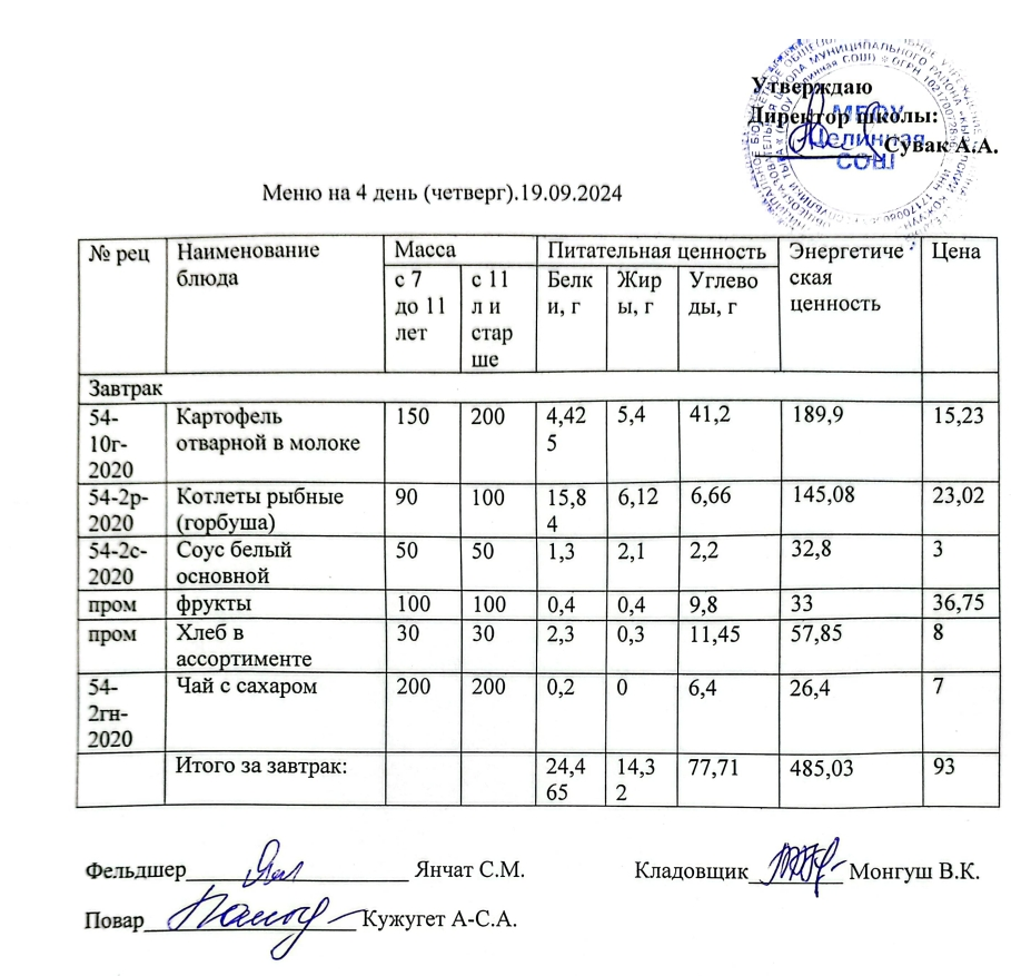 В столовой за каждым классом закреплены столы. Питание школьников организуют в соответствии с графиком, который разработан исходя из режима учебных занятий. Соблюдение посещения столовой контролирует дежурный педагог, дежурный администратор.